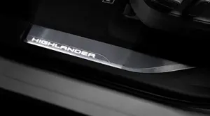 Highlander LED logo illuminates icy white when the front doors are open to help with entry into the Highlander. Durable corrosion resistant finish features brushed, polished accents. This smart and stylish addition helps prevent door sill scuffs and scrapes.